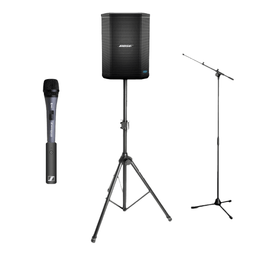 Get married on a cliff, in a forest, or on the beach. This completely battery-powered system requires zero cables and zero power outlets. The wireless microphone adapter converts a standard mic into a wireless one, keeping your ceremony photos clean and clutter-free.
