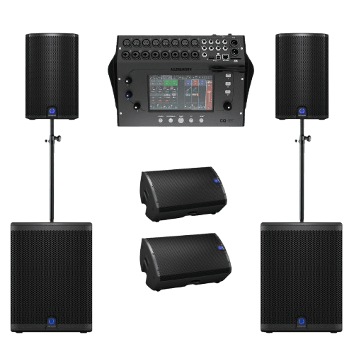 The perfect balance of power and portability. This system fits easily on smaller stages but still delivers the punch you need for a band. With the intuitive CQ18T mixer, you can mix from the stage via iPad, while the dedicated subs ensure the kick drum is felt, not just heard.